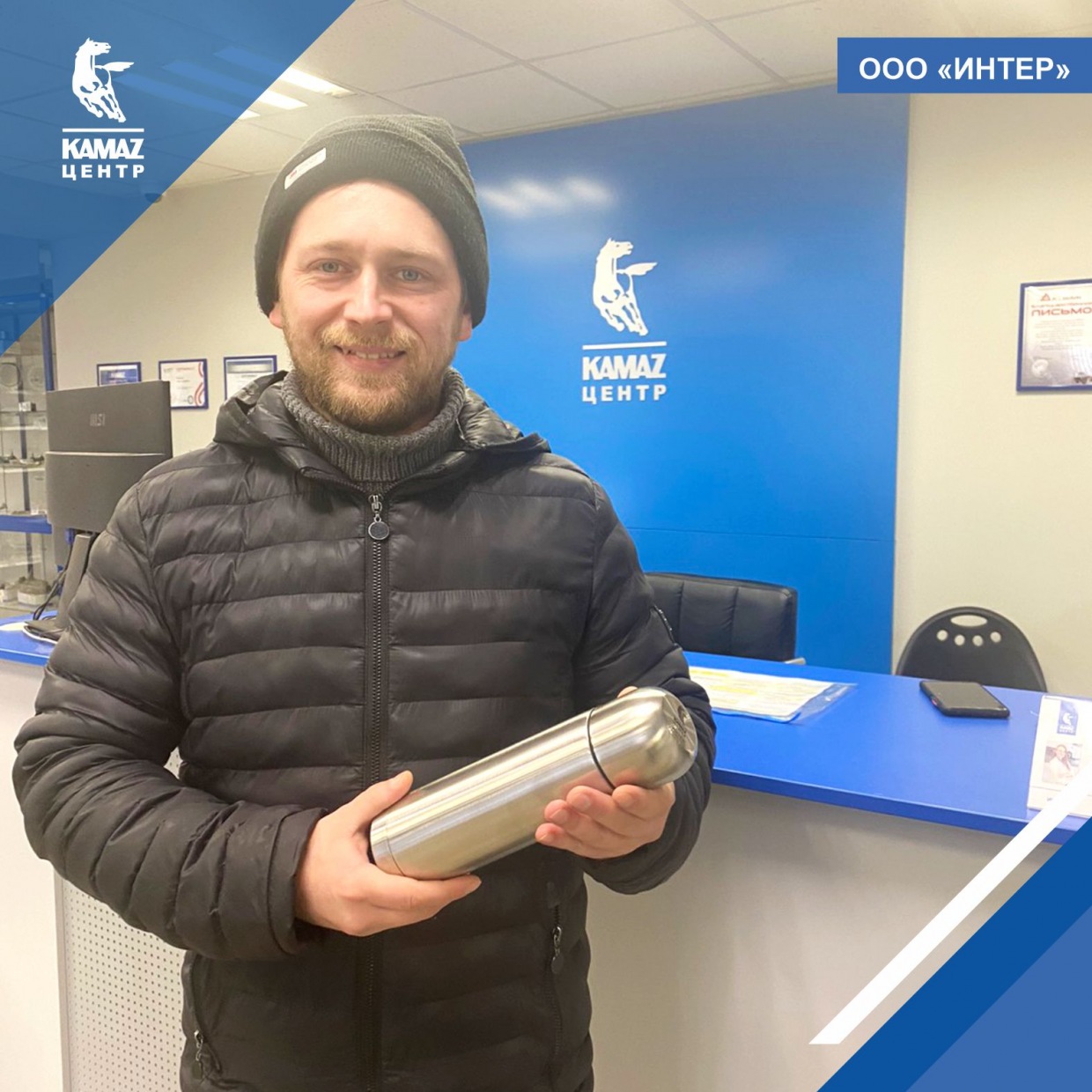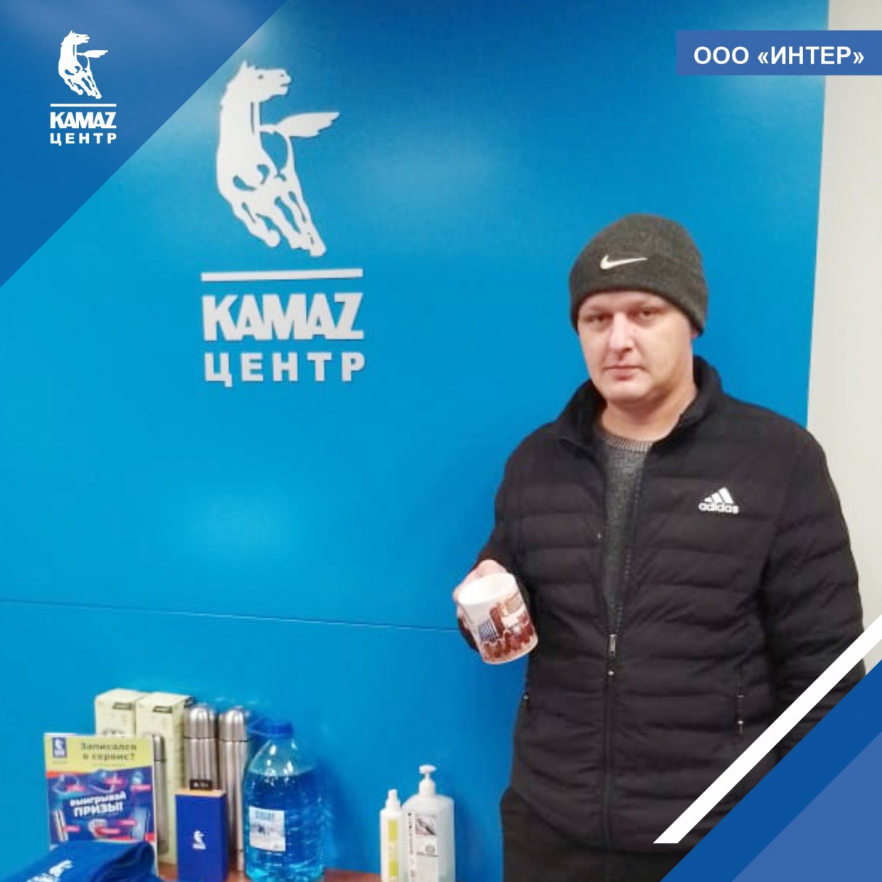 Среди призов были сувениры и полезные подарки. Power bank, практичный термос, фирменная кепка, кружка, уютный плед - и всё это с фирменной символикой КАМАЗ центра ИНТЕР.